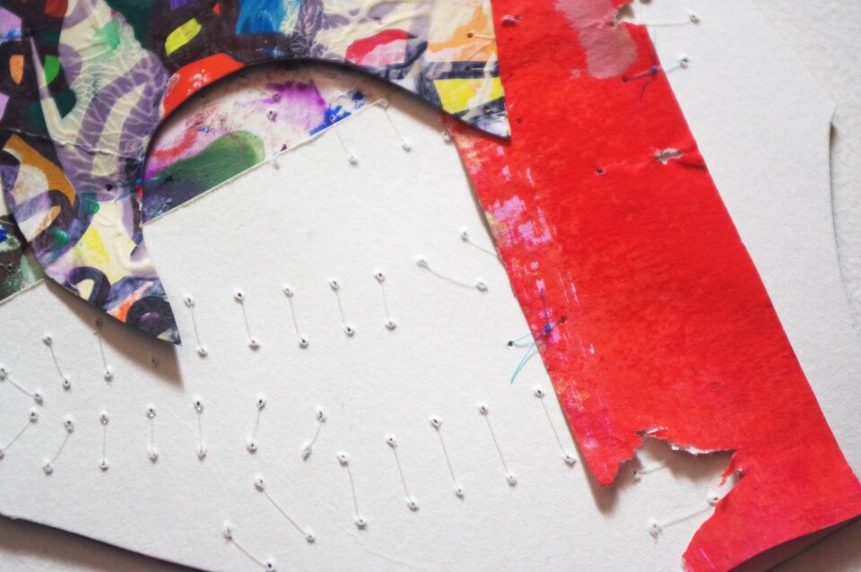 Aclyric, pen and string on paper(アクリル、ペン、糸、紙、ナイロンモノフィラメント)