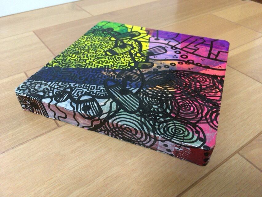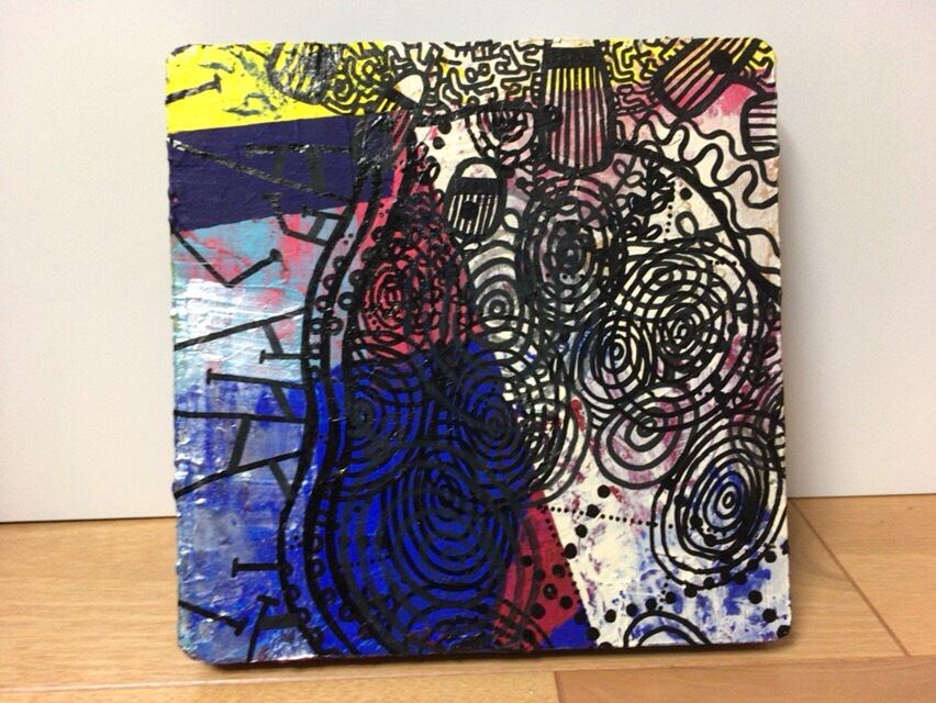 168×168mm, Pen and acrylic, gouach, nail polish, varnish and modeling paste on waste wood 2016