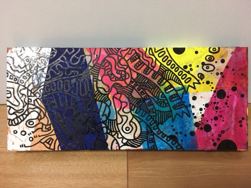 126×295mm, Pen and acrylic, gouach, nail polish, varnish and modeling paste on waste wood 2016